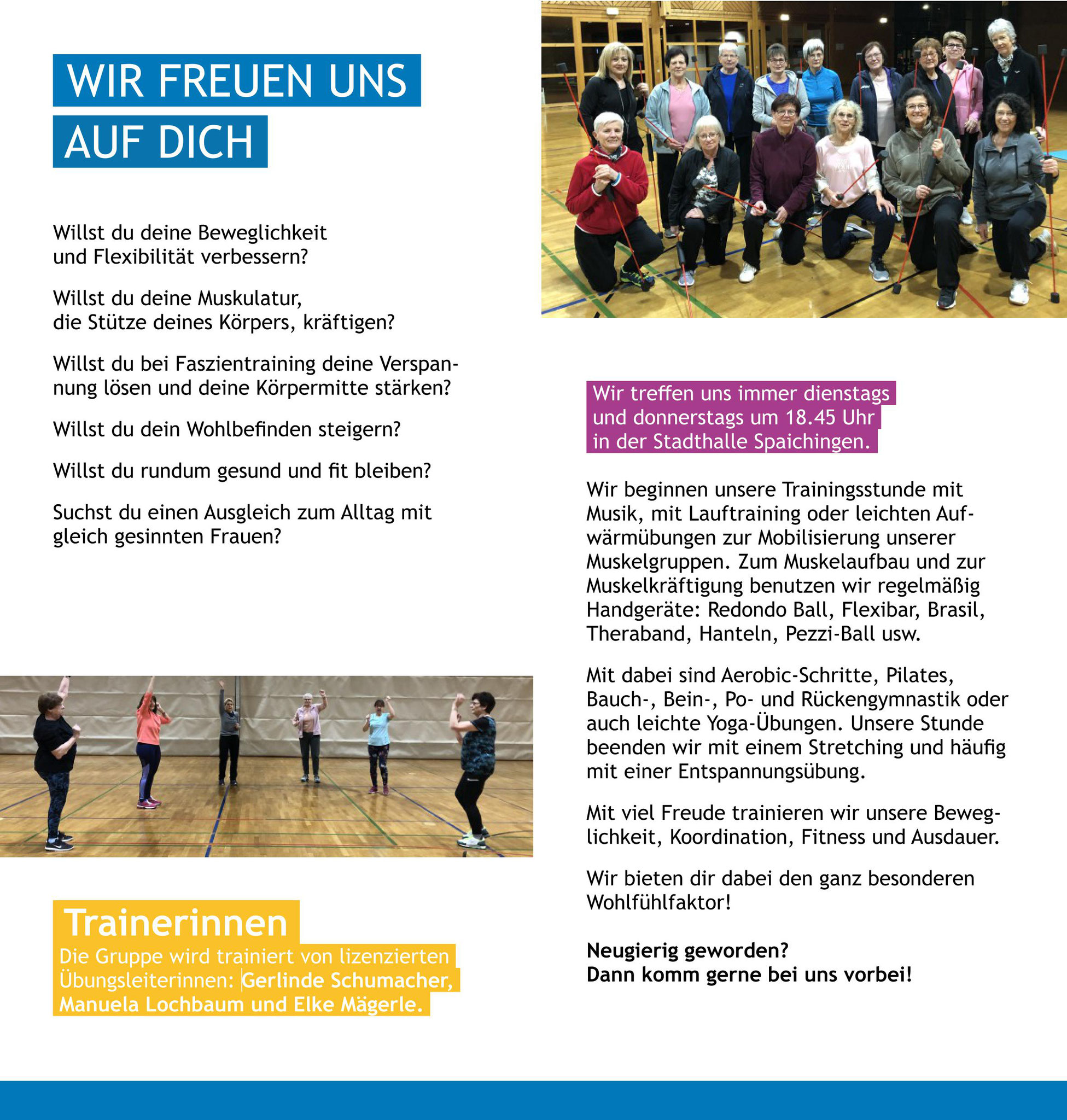 Ein vielfältiges Angebot im Fitness- und Gesundheitsbereich hat die Sparte Freizeitsport zu bieten: Hobbygruppe Sportabzeichen, Damen-Gymnastik- und Diabetikersportgruppe sowie die wachsende Tanzsport-Abteilung mit den Gruppen Rock'n'Roll, Boogie Woogie, Tanztherapie, Line Dance und Lateinformationstanz. Außerdem: Parkour!