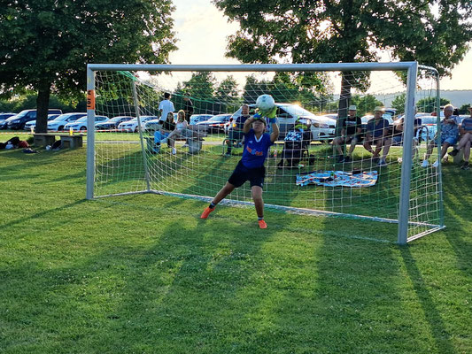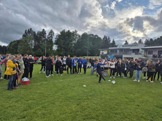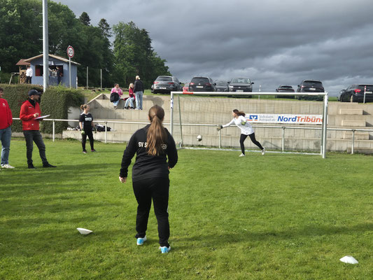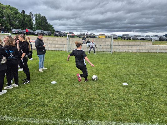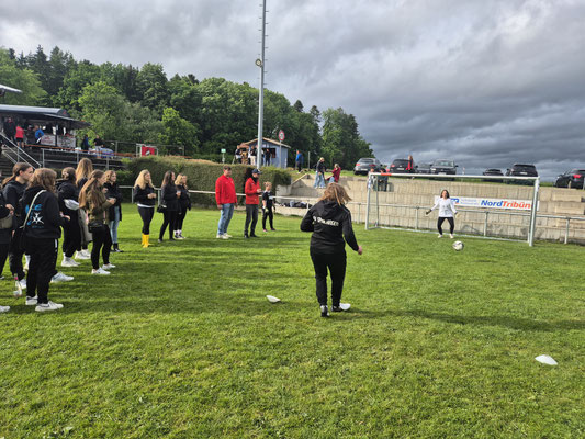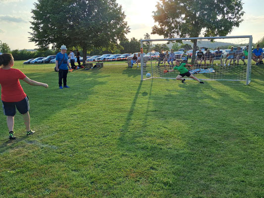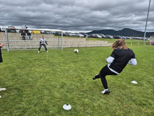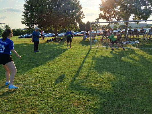 Da in Kürze ein Neunmeterturnier ansteht, übten die Frauen sich zuerst in dieser Disziplin, um sich danach die mitgebrachten Leckereien schmecken und die vergangenen fünf Jahre Revue passieren zu
