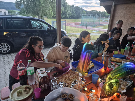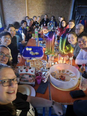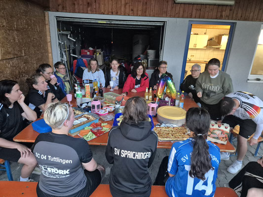 Der Trainingstermin wurde etwas gekürzt, um anschließend noch ausreichend Zeit für die gemeinsame Feier zu haben, bei der die Frauen die mitgebrachten Köstlichkeiten genossen und die letzten 14 Jahre Revue passieren ließen.