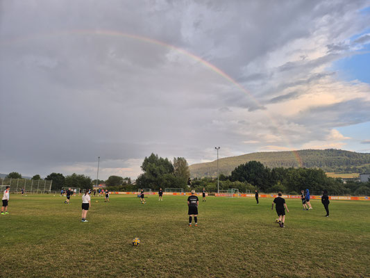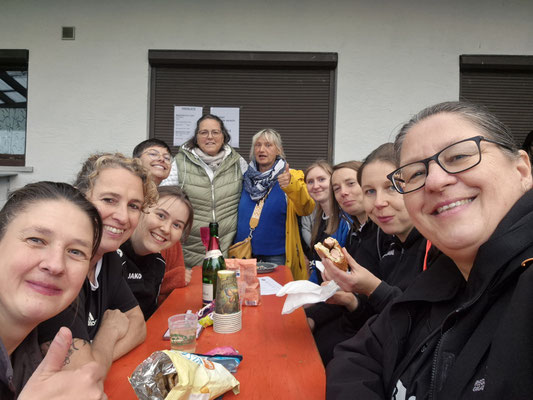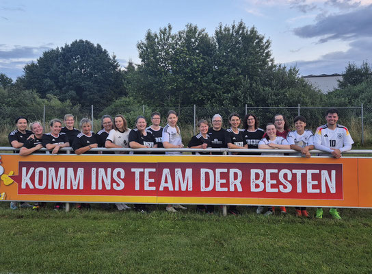Die Hobbykickerinnen freuten sich über den Besuch einiger Vereinsoffizieller und durften nach deren Training auch noch die Herrenmannschaft herzlich begrüßen.